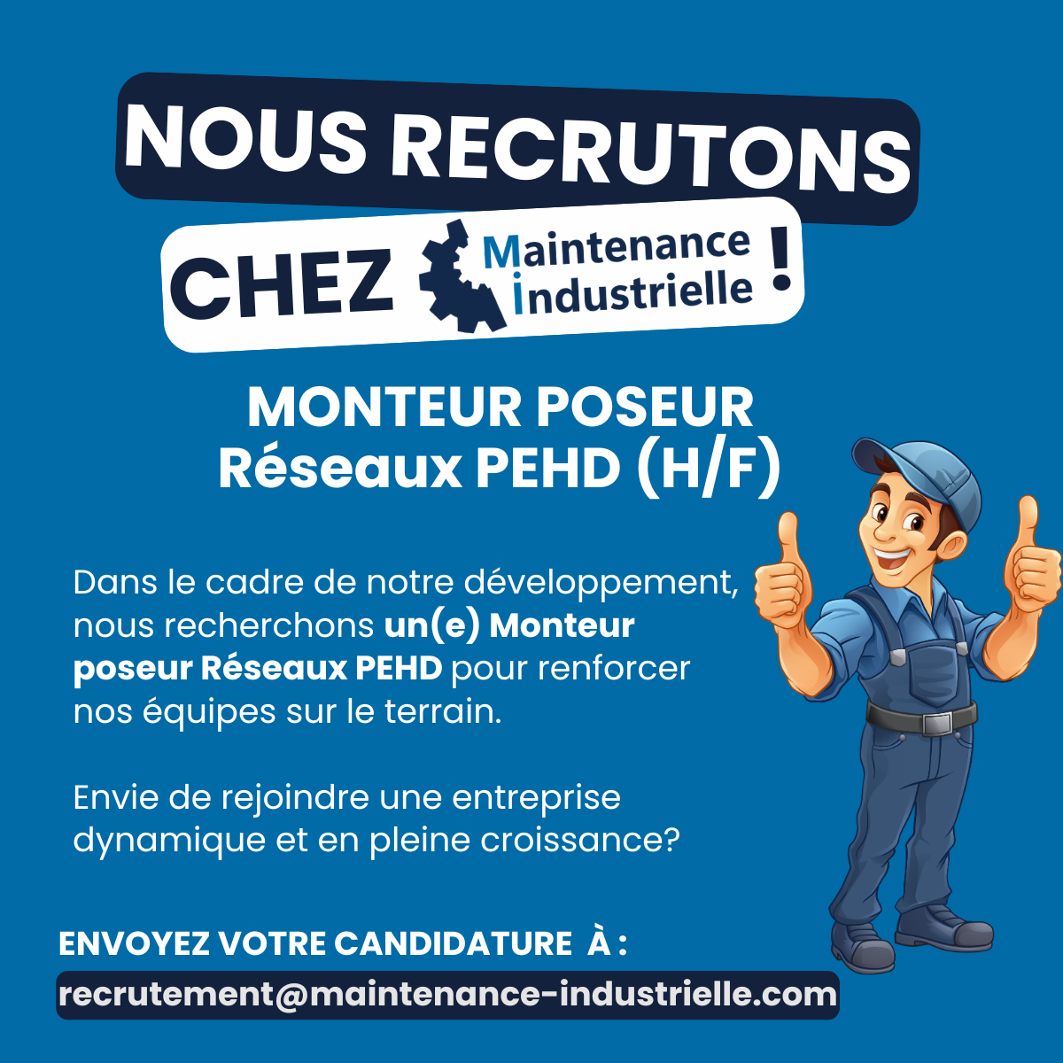 Envoyez-nous votre candidature à recrutement@maintenance-industrielle.com